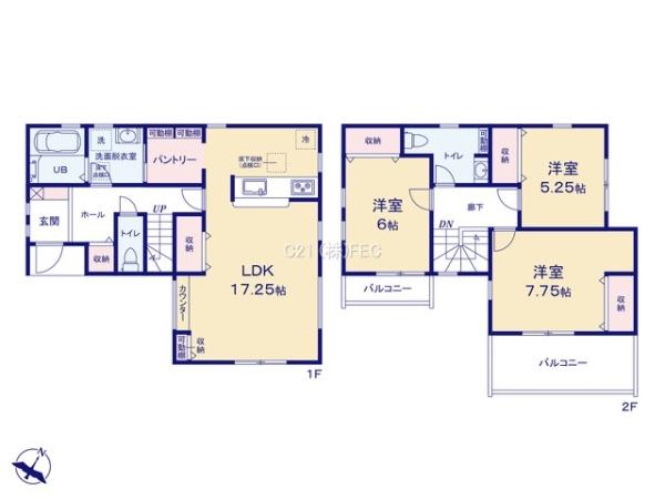 | 築年月 | 2025年11月築 | 間取り | 3LDK (LDK17.25/洋室7.75/洋室6/洋室5.25) | ||