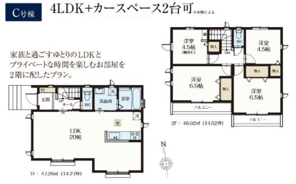 | 築年月 | 2026年1月築 | 間取り | 4LDK (LDK20/洋室6.5/洋室6.5/洋室4.5/洋室4.5) | ||