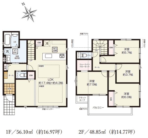 | 築年月 | 2026年2月築 | 間取り | 4LDK (LDK21.7/洋室7.5/洋室6/洋室5.7/洋室3.7) | ||