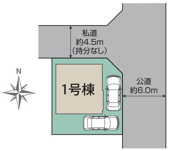 | 接道状況 | 接道: 東 公道 道路幅: 6m 接道: 北 私道 道路幅: 4.5m |
