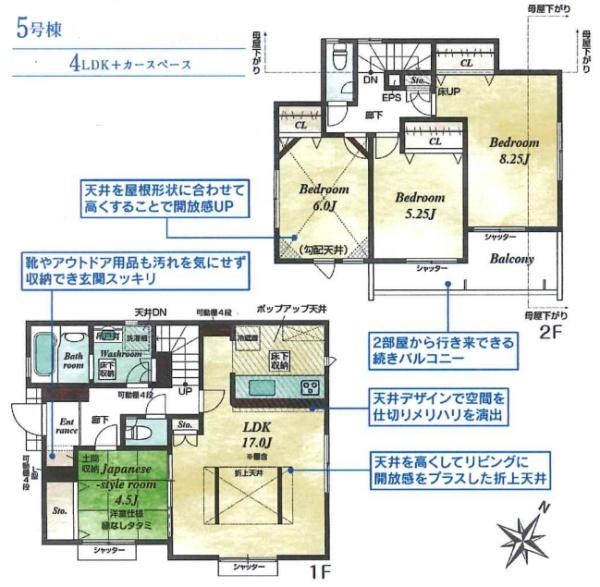 | 築年月 | 2025年12月築 | 間取り | 4LDK (LDK17/和室4.5/洋室8.25/洋室6/洋室5.25) | ||