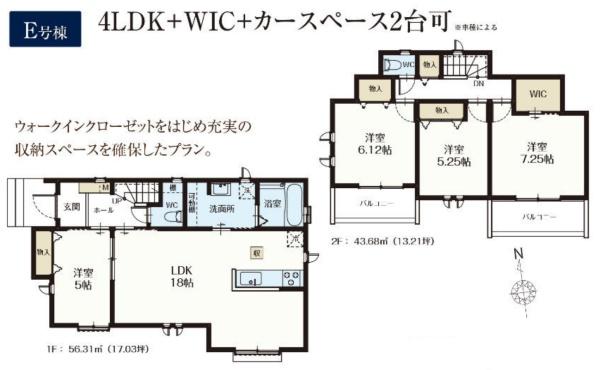 | 築年月 | 2026年1月築 | 間取り | 4LDK (LDK18/洋室5/洋室7.25/洋室6.12/洋室5.25) | ||