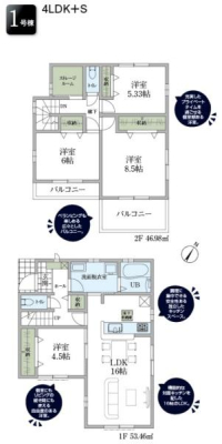 | 築年月 | 2026年2月築 | 間取り | 4SLDK (LDK16/洋室3/洋室8/洋室5.33/洋室5.25/S3) | ||