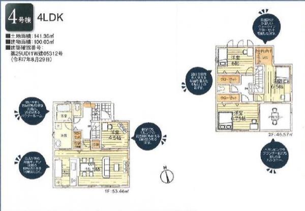 | 築年月 | 2025年12月築 | 間取り | 4LDK (LDK16.5/洋室4.5/洋室6.75/洋室6.5/洋室6) | ||